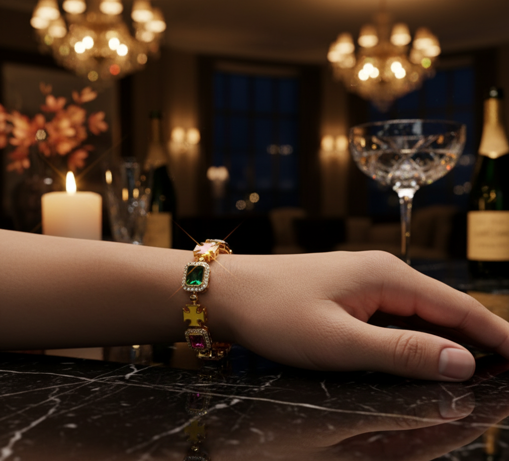 Unlock a world of style with the stunning Alaric Bracelet. Its vibrant gemstones and exquisite design make it the perfect accessory to express your individuality.