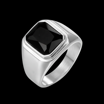 Every line of Cael is engineered for power. The high-luster silver body mirrors the precision of its wearer, while the faceted gemstone captures light like obsidian glass. Minimal in form yet commanding in energy, it’s built for the man who leads with composure and certainty.