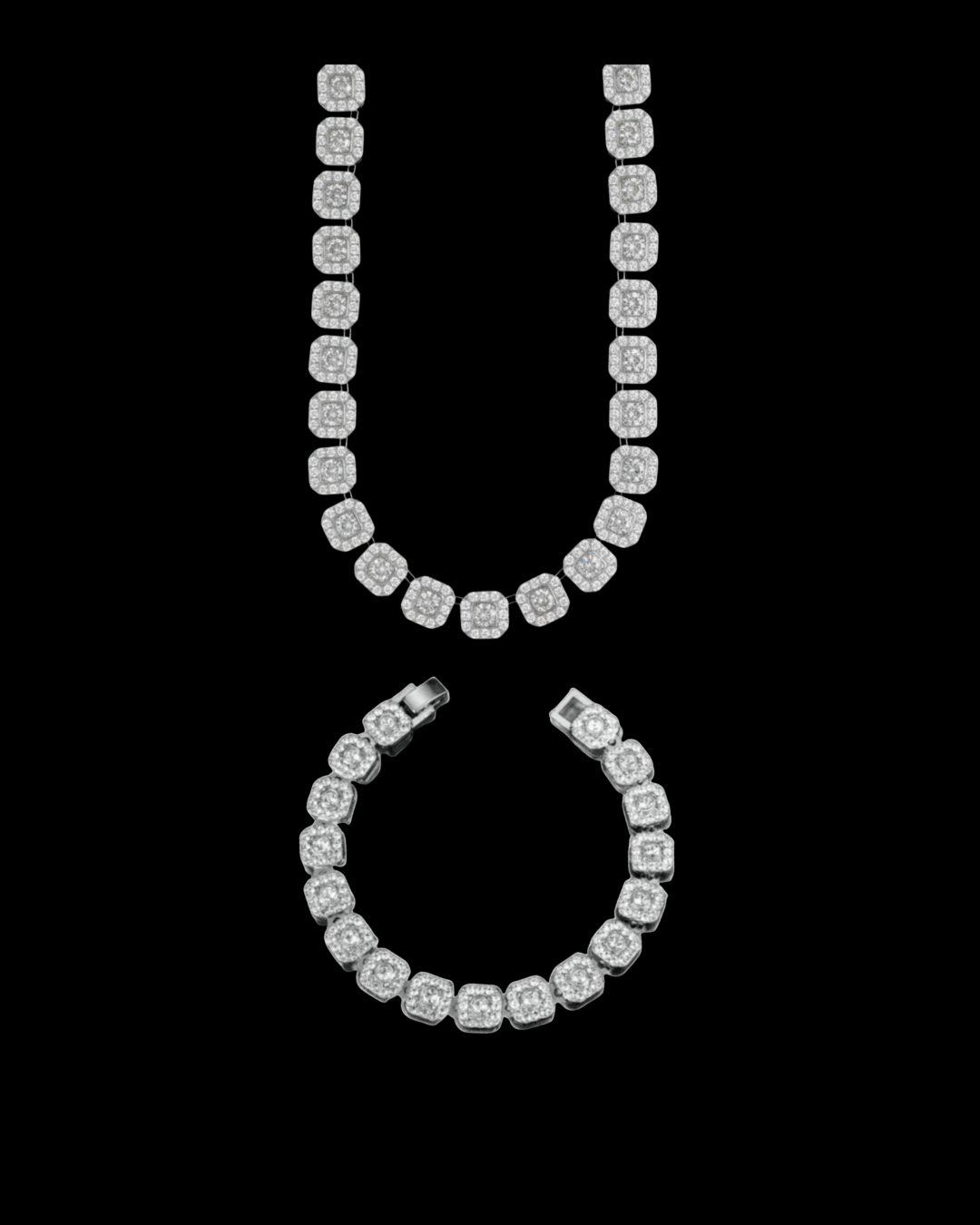 lluminate your style with the Calixte Set in Silver, a breathtaking ensemble that exudes elegance and sophistication. This stunning set features both the Calixte Necklace and matching bracelet, each adorned with a series of sparkling cubic zirconia stones meticulously set in high-quality silver-plated bands. The Calixte Set ensures a radiant shine and lasting durability, making it a standout addition to any jewelry collection.