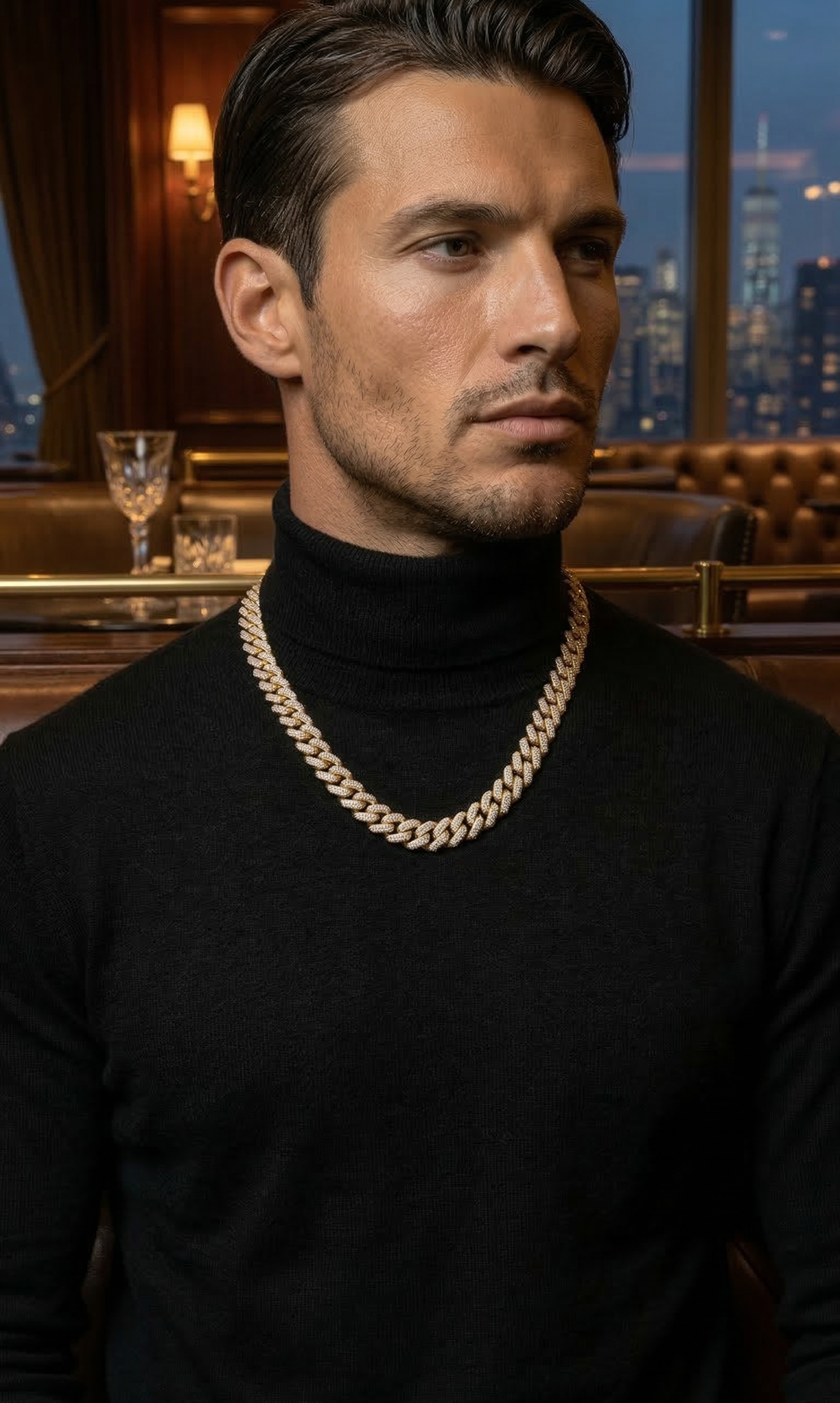 Adorned with hand-set 5A cubic zirconia stones, the Lorenzo Chain dazzles with every movement, ensuring you stand out in any crowd.