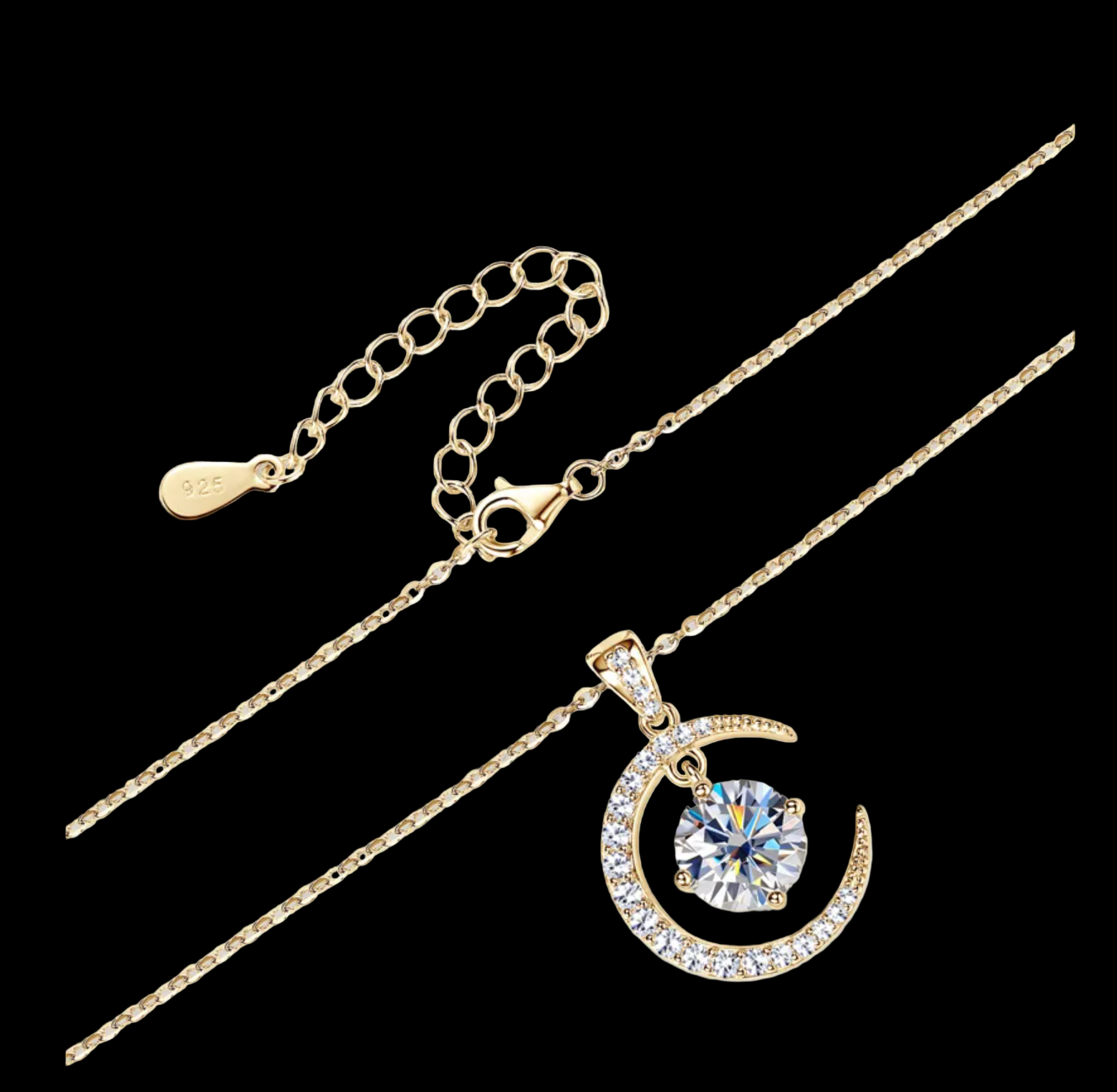 The Lunara Pendant is a true expression of timeless luxury, crafted for those who appreciate sophistication in its purest form. A brilliant 8mm moissanite is embraced by a crescent moon silhouette, radiating light with extraordinary fire and brilliance. Designed to capture both strength and grace, this pendant elevates any occasion with an aura of refinement.