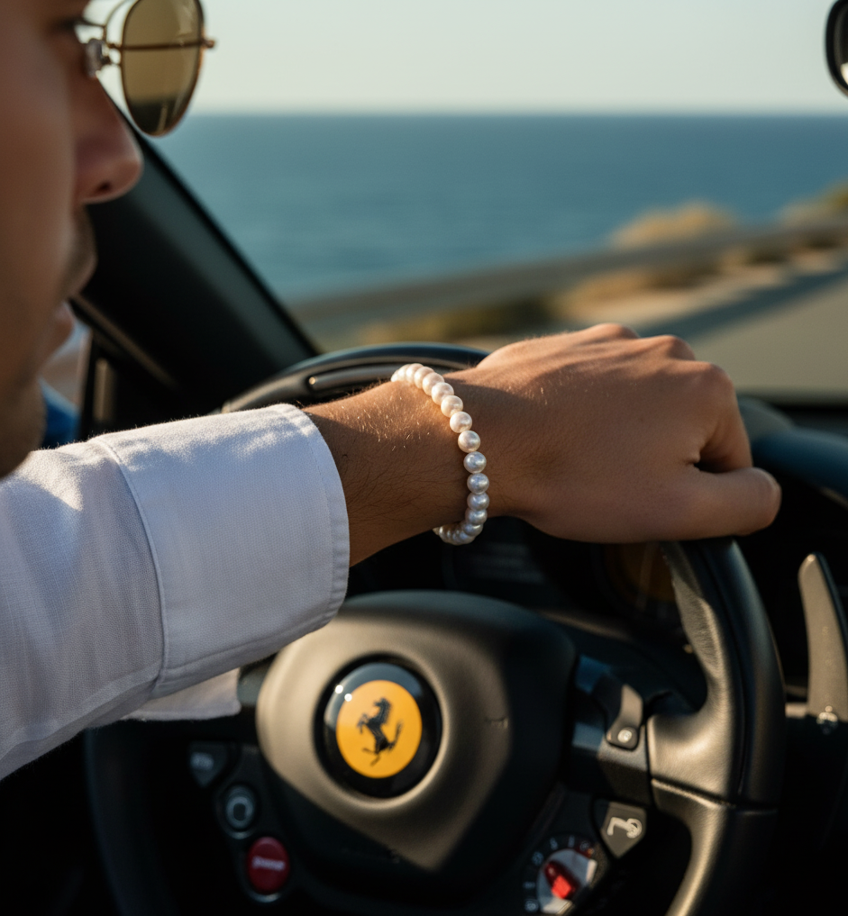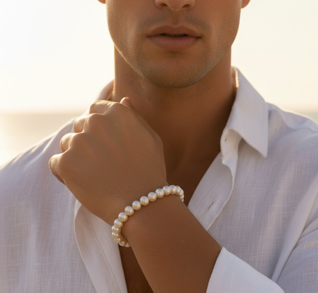 The Pearl Bracelet brings timeless sophistication to modern styling — each flawless simulated pearl reflecting a soft, luminous sheen that commands quiet attention. Designed with an elastic fit, it slips on effortlessly while maintaining a refined, structured silhouette.