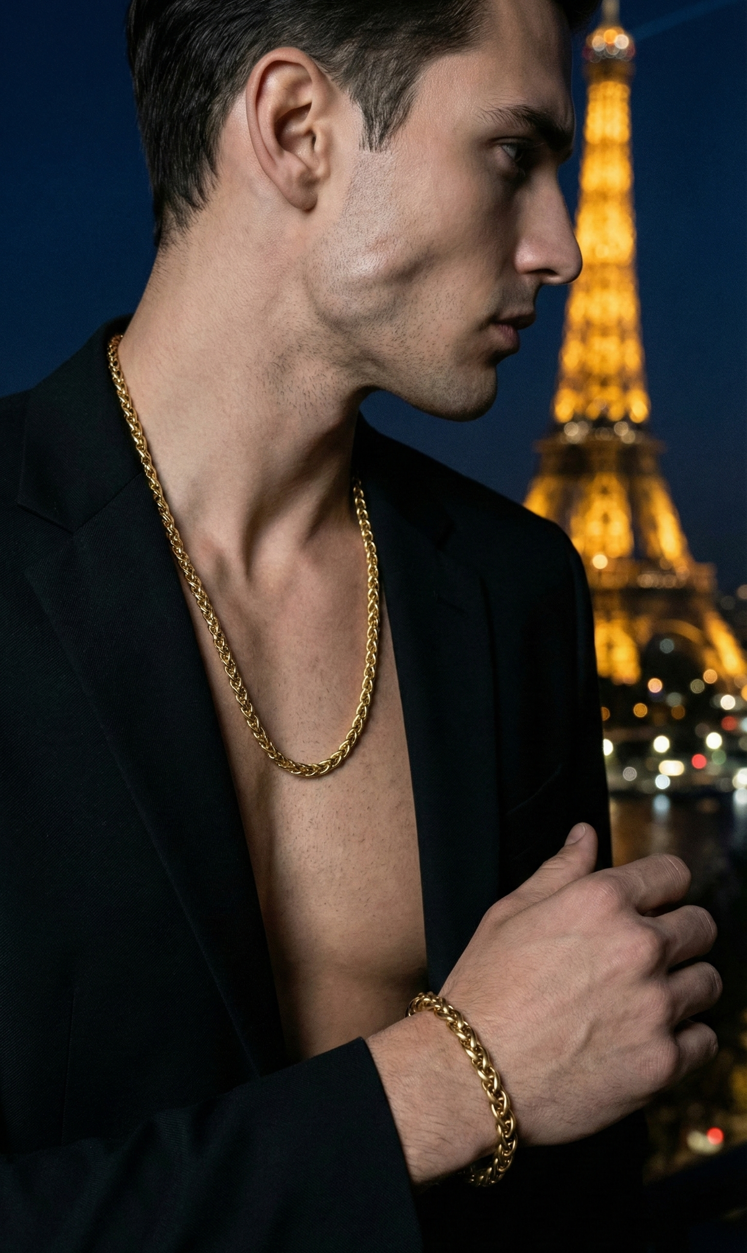 Wear the chain solo for clean presence, the bracelet for understated power, or both together for a polished, cohesive look that feels effortless yet expensive.